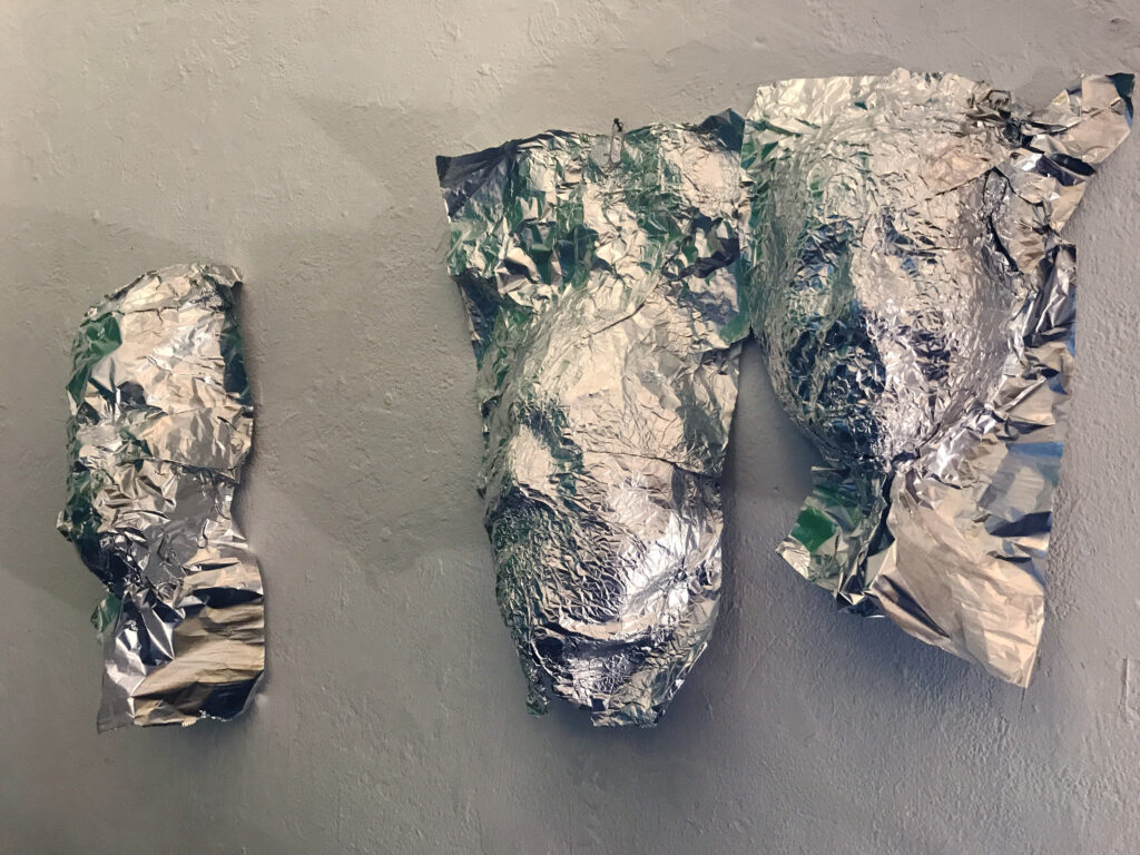 Theatre of Masks. Sculpture, performance, installation. Aluminium foil, various sizes
